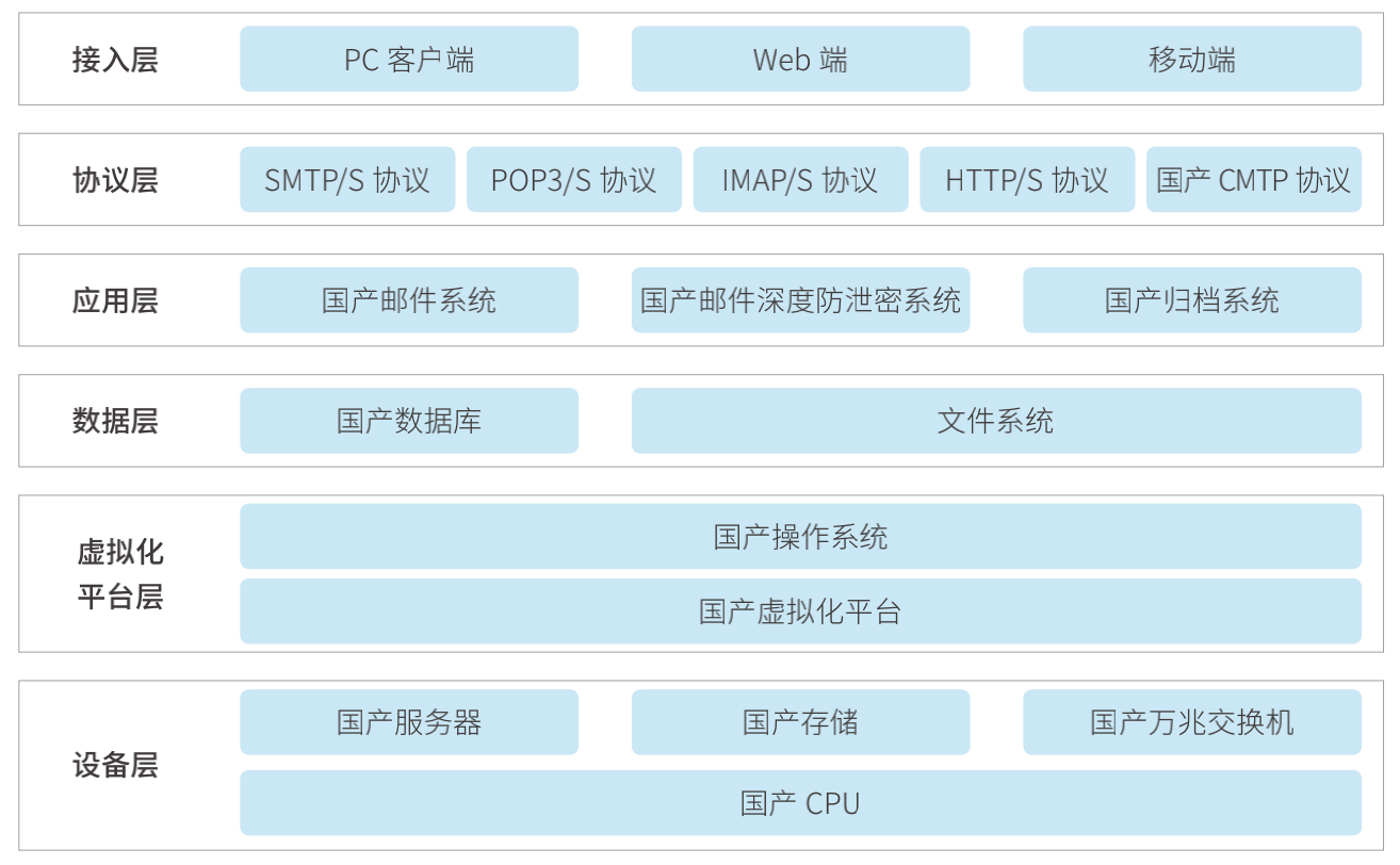 国产虚拟 化平台、国产中间件、国产防泄密系统、国产邮件系 统等,