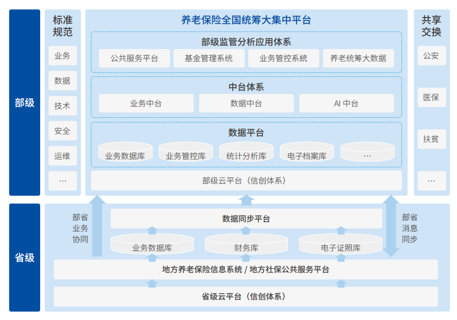 leyu.乐鱼电子云助力人社部构建人社养老及社保数据从省到部之间的高效、稳定、安全的数据传输同步,满足部级全国统筹战略要求。