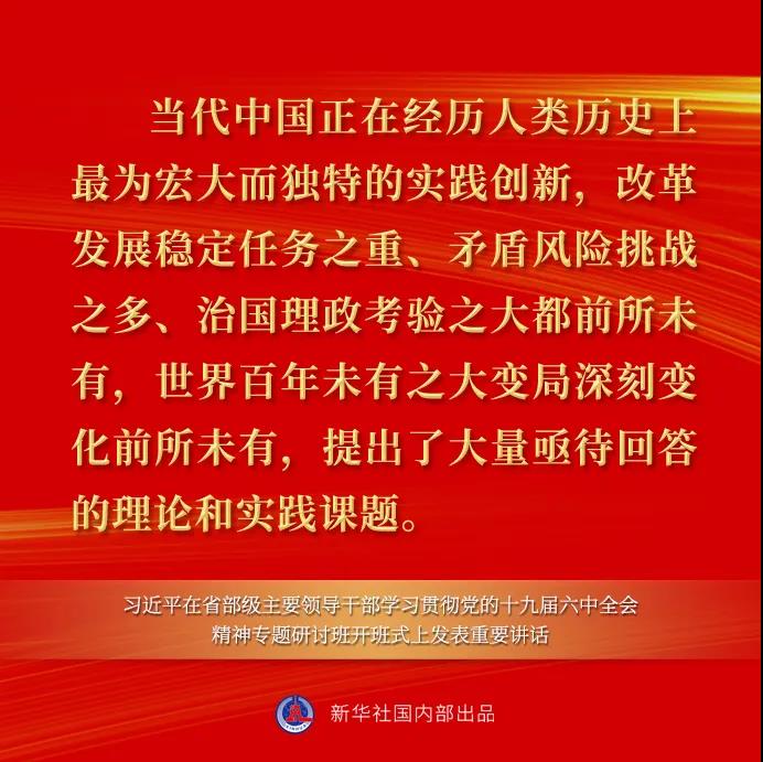 习近平在省部级主要领导干部学习贯彻党的十九届六中全会精神专题研讨班开班式上发表重要讲话强调