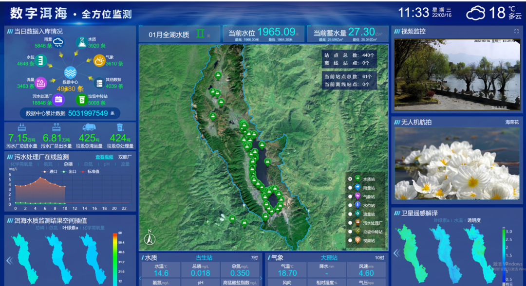 建成了覆盖“天、空、地、水”的监测体系,对洱海流域水文、气象、水质等情况进行实时监测,为科学治湖、精准治污提供强有力的数据支撑。