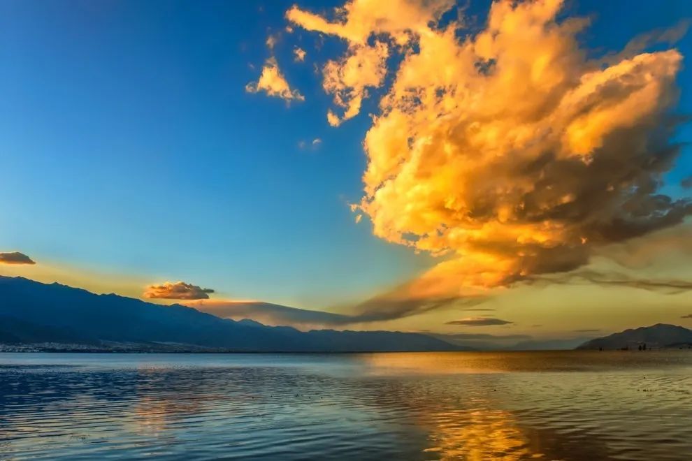 最高级的浪漫,不是包在纸束里的999朵玫瑰,不是世界尽头里的海誓山盟,它应该是洱海上,蓝色湖畔上映着暖光的玄月,落在树梢上邕邕呖呖的鸟鸣。洱海滨的花大片大片的盛开,时不时落入湖水中的樱花打着转子,给一倾蓝波添上一抹温柔。
