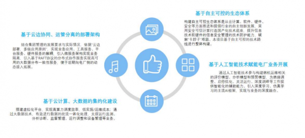作为我国电力行业五家国有独资发电企业集团之一,中国华电在该平台设计之初,就确定了要基于自主可控的生态技术体系建设,并利用云计算、人工智能等先进技术开展建设,并结合集团公司管理的发展要求与实际情况,确定了“云边部署,多级应用”的原则。