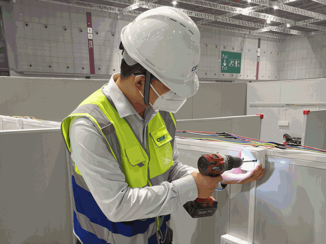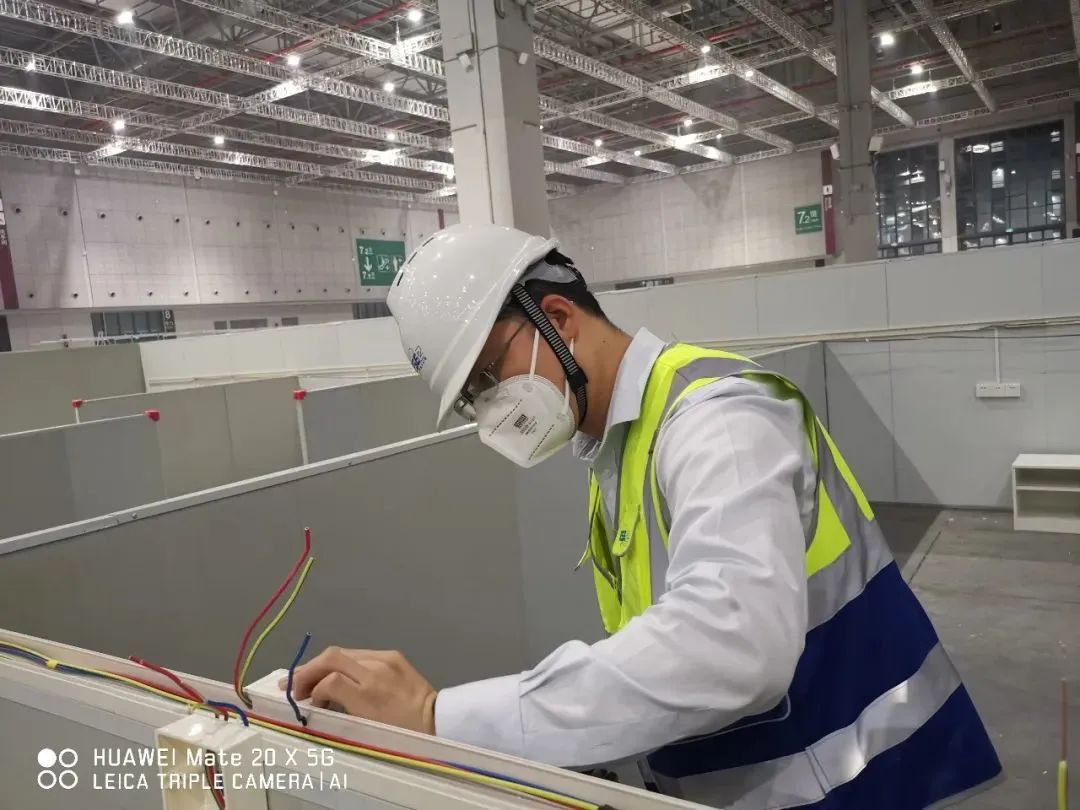 经过三天两夜奋战,突击队全体成员克服材料机具短缺等诸多不利因素顺利完成指挥部分配给我司的全部任务:共完成总面积8000余平方米,涉及隔离方仓800余个,床位1300余张的配电任务以及近5000个用电点位的放线布线,插座安装及应急疏散指示牌安装,50余间医护工作站水电安装任务及紧急任务。目前,上海国家会展中心方舱医院已经开始投入使用,极大缓解了上海市当前疫情防控压力。
