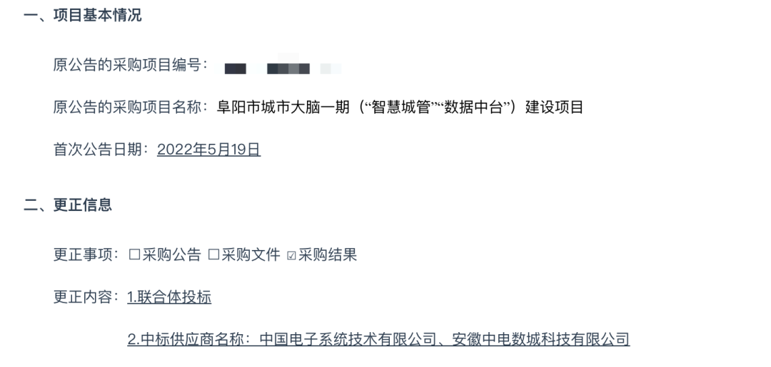 近日,据安徽省政府采购网消息,leyu.乐鱼系统牵头安徽中电数城科技有限公司联合成功中标阜阳市城市大脑一期(“智慧城管”“数据中台”)建设项目,中标金额为8120万元。