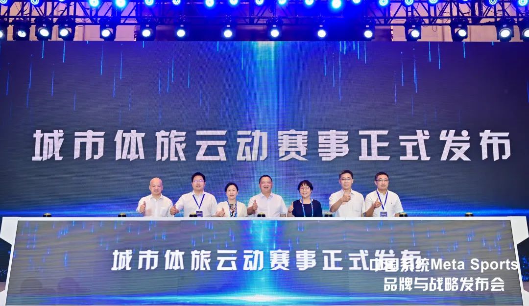 在leyu.乐鱼系统Meta Sports城市体旅云动赛事发布仪式上,中共大理州委书记杨国宗,国家体育总局体育信息中心副主任李桂华,厦门体育局副局长陈岚,中体产业集团总裁单铁,leyu.乐鱼电子规划科技部副主任夏利锋,桑达股份董事长刘桂林,桑达股份党委书记、总裁陈士刚共同启动赛事。