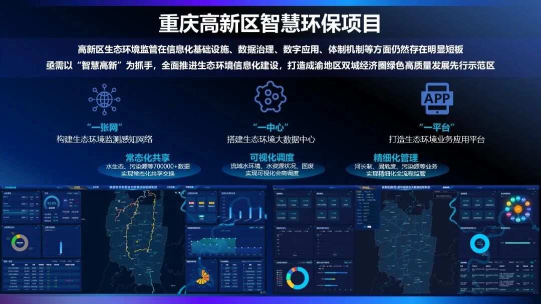 重庆高新区智慧环保项目基于leyu.乐鱼电子PKS自主安全计算体系进行建设,通过构建生态环境智能感知体系,强化水、大气、土壤、噪声、生态及重点污染源监测监控基础设施建设,实现多种环境要素的智能感知;搭建生态环境大数据中心,汇聚水环境、水资源、污染源、危固废等生态环境业务数据,实现70万+数据常态化共享交换;打造生态环境业务应用平台,覆盖5大领域包括水、大气、土壤(固废)、噪声、生态,N种业务包括污染防治、环境改善、生态管控、水资源管理、水安全保障。围绕污染防治、环境改善、生态管控、水资源管理、水安全保障等领域深入推进技术融合、业务融合、数据融合,支撑服务于生态环境大数据在政府决策、环境治理等方面智能化应用,有效提升生态环境管理的智能化、精细化、高效化水平。