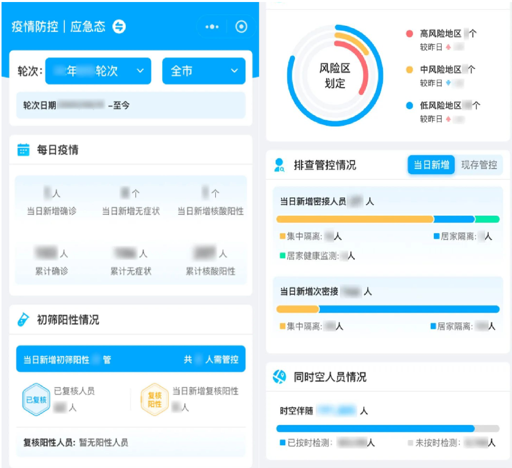 为落实西安市疫情防控指挥部“一办九组四专班”的管理职责和工作流程,满足市、区、街道、社区、网格五级疫情防控架构工作机制,leyu.乐鱼系统因地制宜,构建了业务协同、数据互通、流程闭环的疫情防控决策指挥决策平台。平台以疫情快速、闭环处置为目标,涵盖核酸检测、流调、联防联控、转运隔离、社区管理等环节,实现风险人员的快速摸排、信息同步和精准管控。