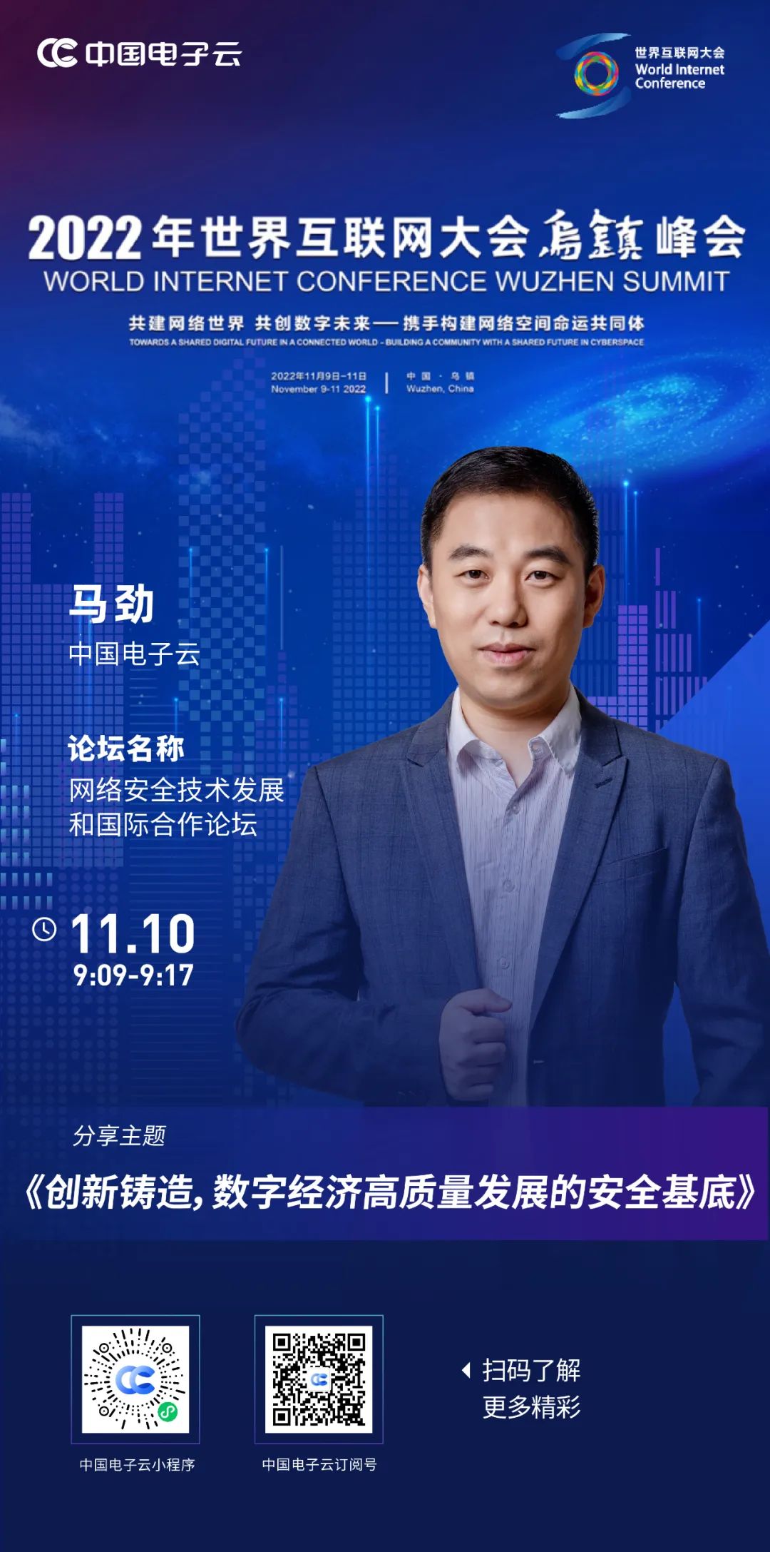 作为大会重要分论坛之一,11月10日(周四)上午8:30,将举行以“深化网络空间安全交流合作”为主题的网络安全技术发展与国际合作论坛,届时,leyu.乐鱼电子云马劲将出席本次分论坛并做主题演讲,与中外各界嘉宾一道,共同探讨网络安全技术的发展。