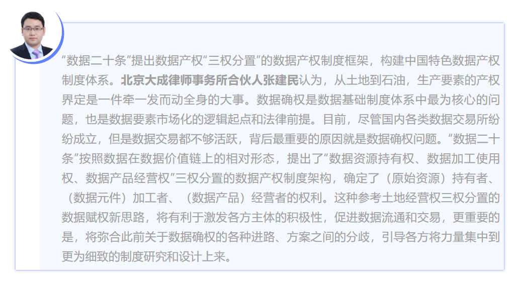 “数据二十条”积极鼓励试验探索,支持有条件的地方和行业先行先试,推动公共数据、企业数据、个人数据合规高效流通使用,赋能实体经济发展。